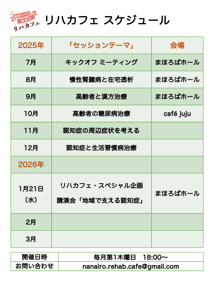 健康教室・地域リハビリ勉強会(リハカフェ)・講演会のお知らせ